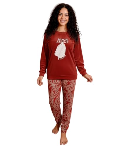 Generic - بيجامة شتوي قطيفة تيشيرت بصميم عادي و بنطلون منقوش للنساء