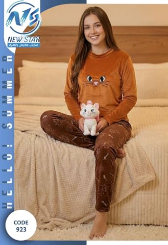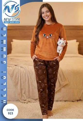 Generic - بيجامة شتوي حريمي قطيفة – (تلبس حتى 75 كيلو) – طقم دافئ بنقشة شتوية مميزة