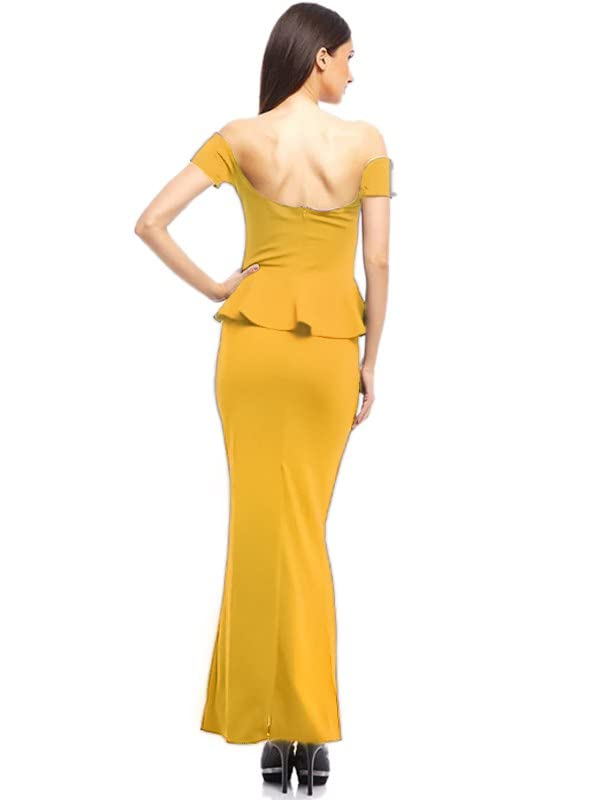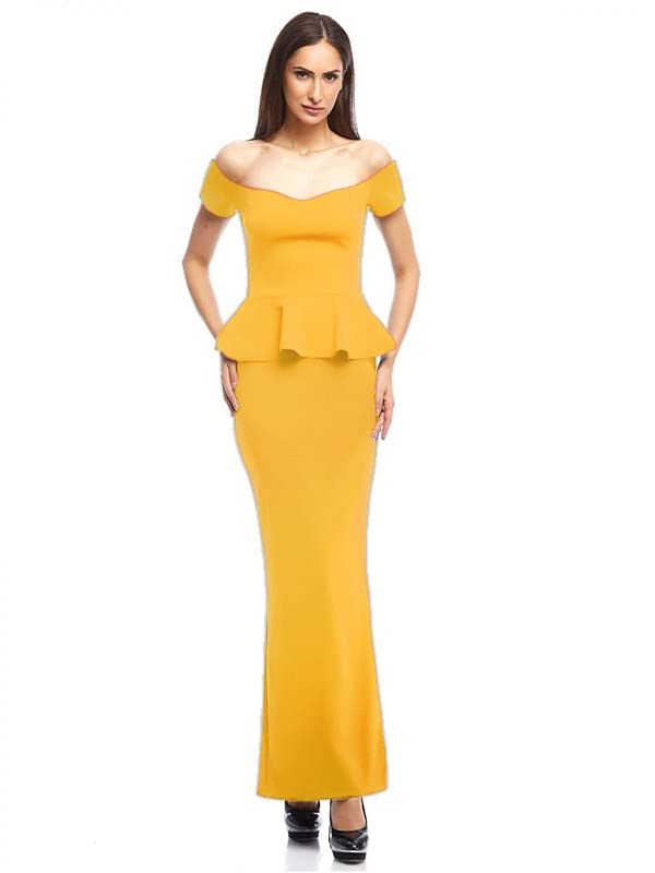 Generic - فستان نسائى أصفر طويل بقصة مروحة من الوسط