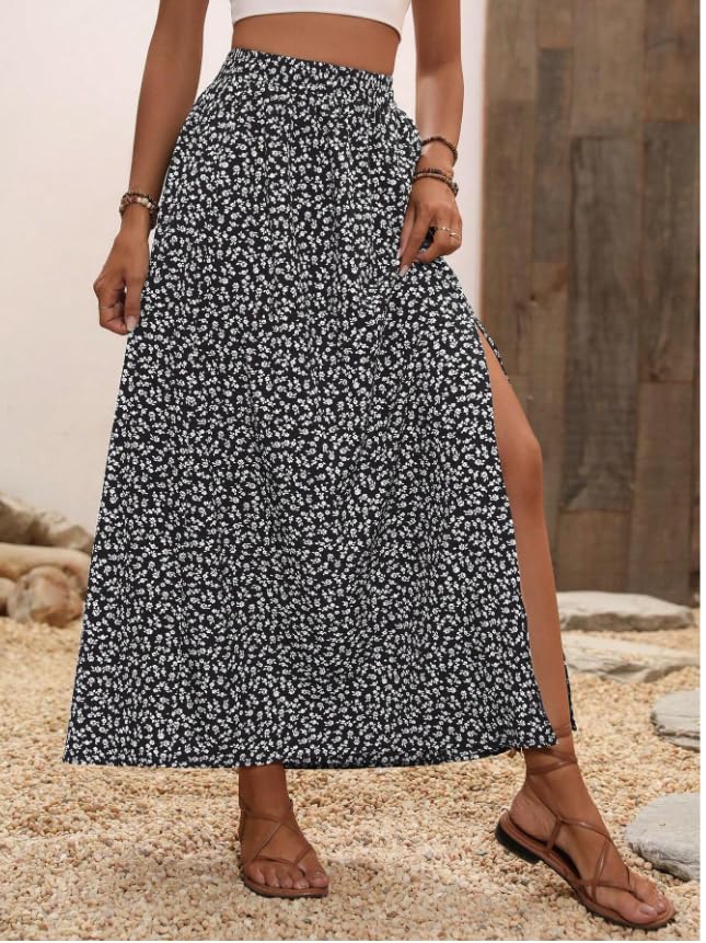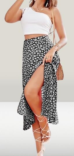 Generic - طقم بلوزة سادة بأكمام واحدة وتنورة منقطة من قطعتين من وونام، مقاس واحد