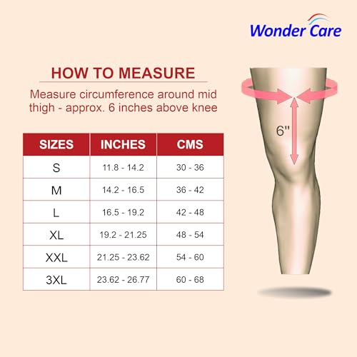 Wonder Care - دعامة تثبيت الركبة للرجال والنساء من ووندر كير لدعم لإصابات الخلع وتمزق الرباط الصليبي جبيرة ركبة ملفوفة طول 19 48 سم مقاس XXL 24.4 - 26.8 62 - 68 معدن