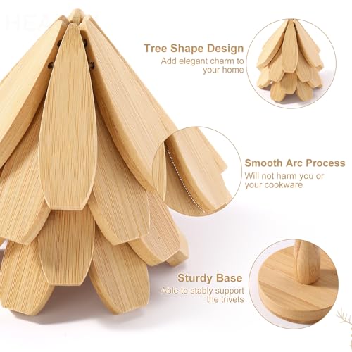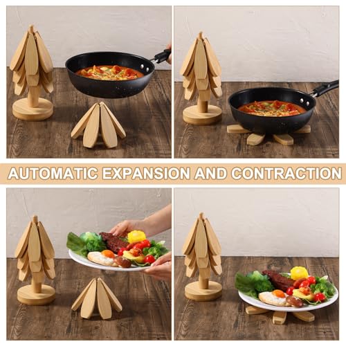 - تصميم مبتكر: تتميز مجموعة قواعد الأكواب الخشبية الخاصة بنا بتصميم شجرة الكريسماس الأنيق والجميل الذي يتكشف على شكل زهرة عند إزالة قواعد الأكواب الخشبية من الحامل ووضع أواني الطهي عليها؛ عند التقاط أواني الطبخ، تنكمش القواعد على الفور مرة أخرى إلى شكل الشجرة؛ تضيف جمالًا طبيعيًا إلى مطبخك وطاولة الطعام