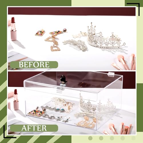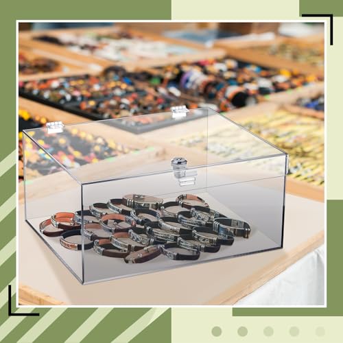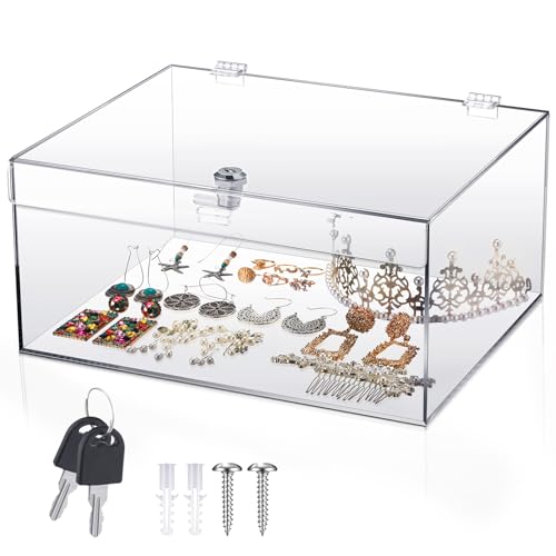 Wonderjune - حافظة عرض بقفل اكريليك مع مفاتيح من وندرجون 12.2 انش × 5.75 انش × 4.6 انش، صندوق تخزين شفاف كبير بقفل للوجبات الخفيفة للثلاجة والمجسمات والمجوهرات والالعاب والتخزين المنزلي