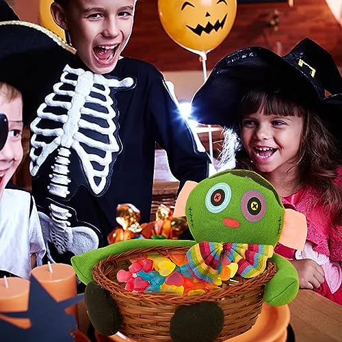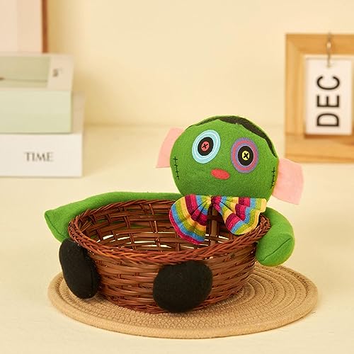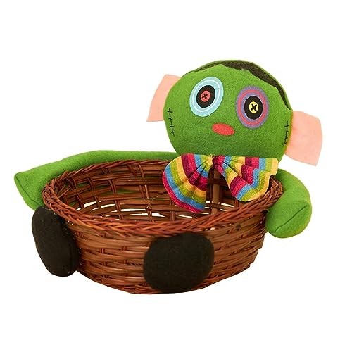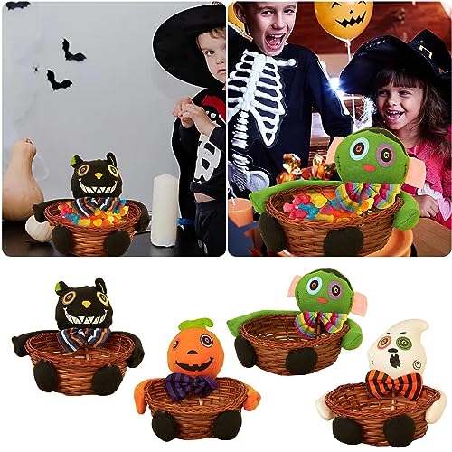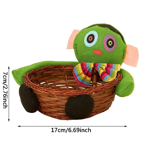Wonka - سلة حلوى شبح اليقطين من القطيفة لتزيين الهالوين، وعاء سكر للأطفال وديكور طاولة، سلة تخزين من الراتان لحلويات الهالوين، قطعة واحدة