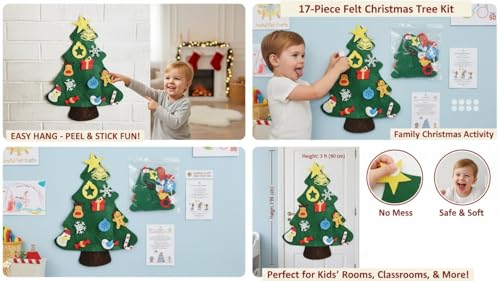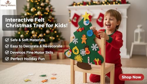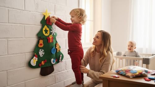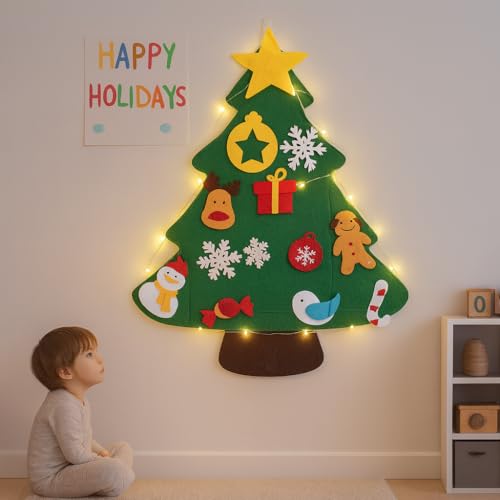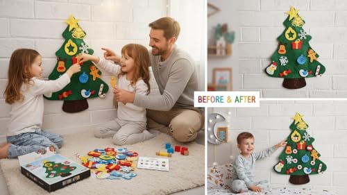 - شجرة عيد الميلاد التفاعلية من اللباد: شجرة كريسماس من اللباد بطول 51 سم مثبتة على الحائط مصممة للأطفال للتزيين وإعادة التزيين بزخارف قابلة للفصل، مما يوفر متعة وإبداعًا لا نهاية له في العطلات