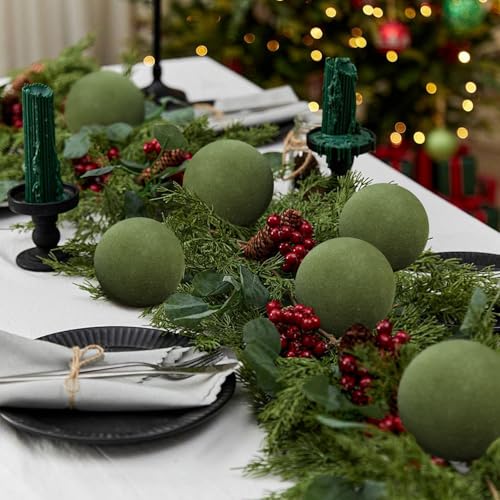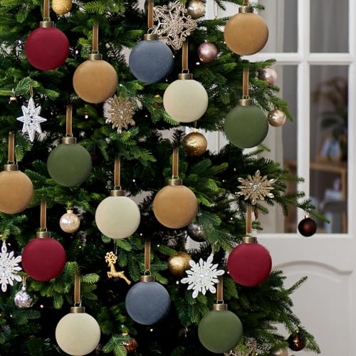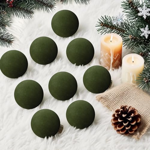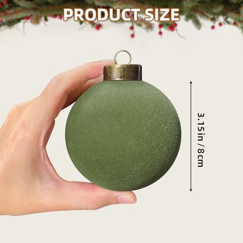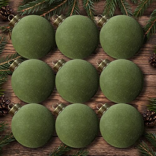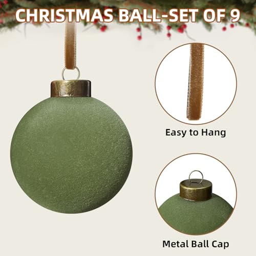 Jueerun - كرات كرات زينة شجرة الكريسماس المتدفقة القطيفة للديكور الداخلي للعطلات والمصابيح المعلقة ومضادة للكسر، عبوة من 9 قطع خضراء، 80 ملم