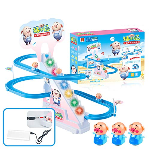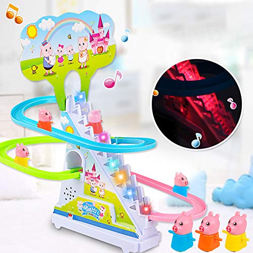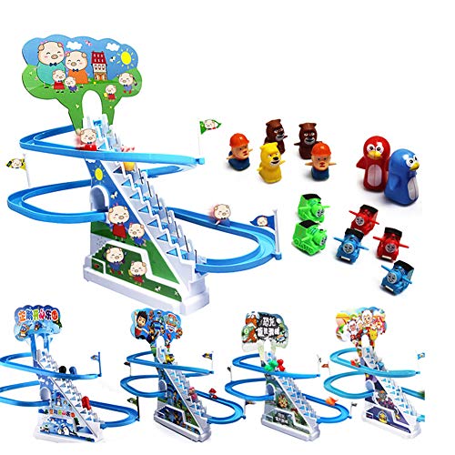 Wonka - لعبة سلالم إلكترونية ذكية مزودة بموسيقى وشخصيات كرتونية للأطفال، منزلق كهربائي مع سيارة التسلق على السلالم [حجم متوسط] بتصميم بطريق بوزن 282 جم