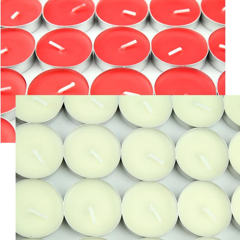 - صغيرة وعملية: 50 شمعة شاي صغيرة الحجم ولكنها كبيرة الحجم (قطر 3.3 سم وارتفاعها 0.88 سم)، وهي الحجم المثالي لقطعة مركزية عائمة جميلة، ومشعلات مجففة، وإضاءة وأكثر من ذلك