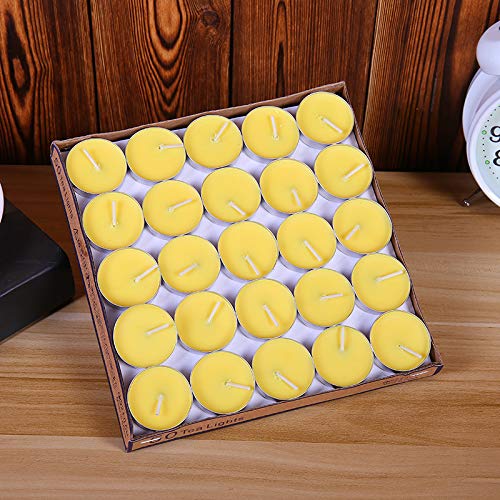 Lomyundar - (50 قطعة) شموع تي لايت غير معطرة من لوميندر - شموع شاي بارافين بدون دخان بدون تنقيط | شموع صغيرة نذرية صغيرة للمنزل وحمام السباحة والسبت وحفلات الزفاف والكريسماس وحالات الطوارئ (أصفر)