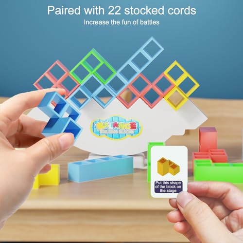 - وضعان للعب: 1. وضع التحدي للاعب الواحد: يمكنك تكديسها بشكل منفصل للتدرب على الصبر والتوازن وتطوير روح عدم الاستسلام بسهولة. 2. وضع لعب ممتع للاعبين اثنين: خذ 22 بطاقة؛ اقلبها على الطاولة؛ غير ترتيب البطاقات؛ اسحب بطاقة عشوائيًا؛ اتبع تلميحات البطاقة للخطوة التالية. كل من يحصل على بطاقات المكعبات يخسر أولاً.