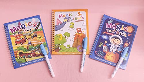 Tera13 - مجموعة كتب تلوين مائية سحرية للاطفال من تيرا 13، مع لوحة نشاط قابلة لإعادة الاستخدام تُكشف بالماء، قلم مائي للأطفال، 3 قطع