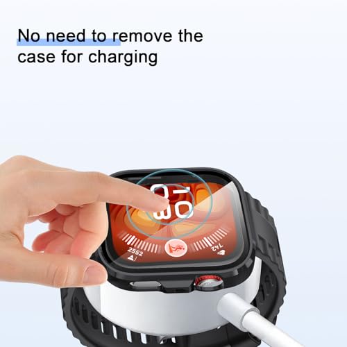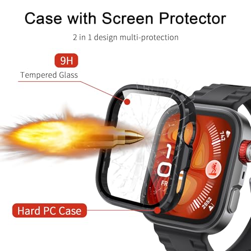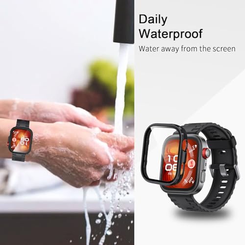 - حماية مثالية: يغطي هذا الجراب المصنوع من مادة البولي كربونات والزجاج المقاوم للخدش الحواف الأمامية والمنحنية بالكامل للساعة ويوفر حماية كاملة بـ 360 درجة لساعتك ضد الخدوش والسقوط والصدمات.