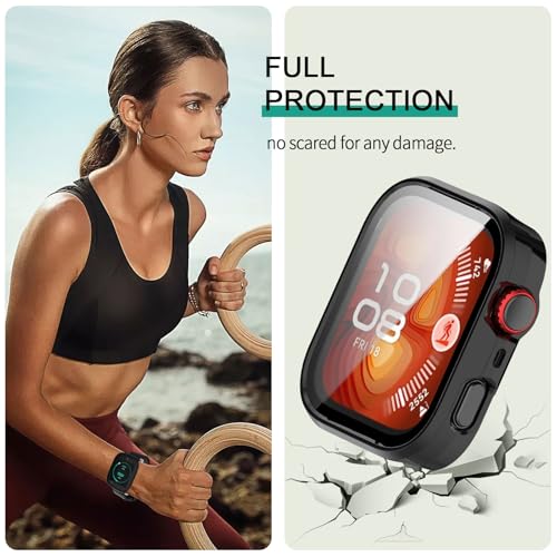 Wonsoso - جراب حماية متوافق مع ساعة هواوي فيت 4 برو مقاوم للصدمات بزاوية 360 درجة مع شاشة حماية HD عالية الدقة وغطاء صلب مقاوم للخدش من البولي كربونات فائق النحافة من وونسوسو [عبوة من قطعة واحدة]