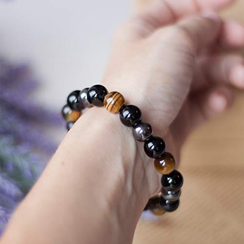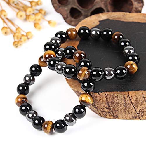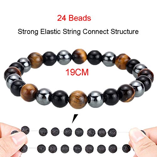 Wonvin Collection - سوار من حجر عين النمر والهيماتيت ونفين كوليكشن 8 10 ملم خرز صلاة للشفاء والتوازن للرجال والنساء اسود