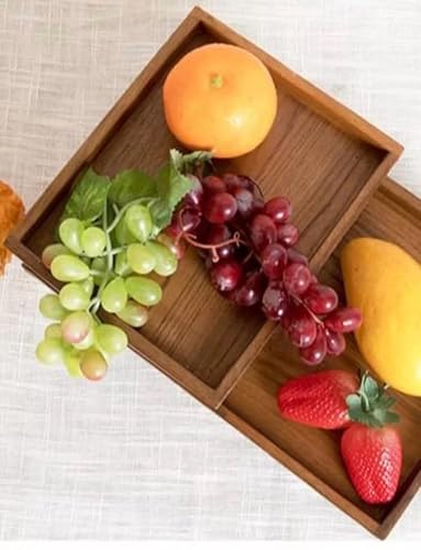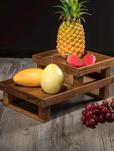 WOOD ART STORE - متجر لفن الخشب صينية فاكهة خشبية بنية | صينية ريفية لعرض الفريوت والتقديم والديكور والتخزين وديكور المنزل (عبوة من قطعتين)