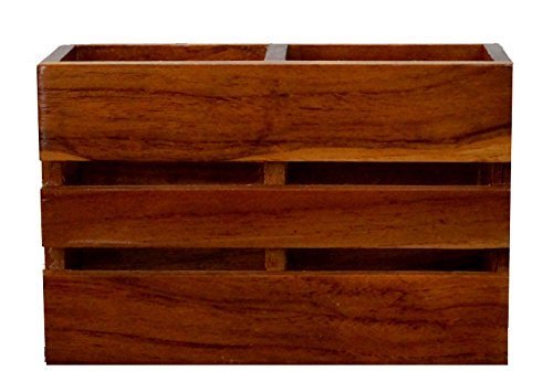 WOOD ART STORE - متجر لفن الخشب حامل خشبي للمنزل والمكتب والمطعم، رف تخزين متعدد الاغراض، حامل ادوات المائدة، حامل اقلام، حامل مناديل (تصميم بـ 2 حجرات)