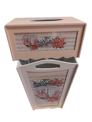 Generic - باسكت خشبي مع علبه مناديل خشب برسومات ورد