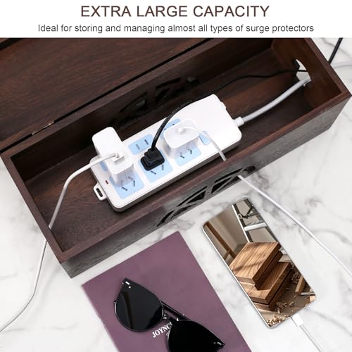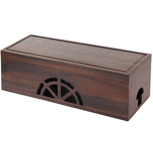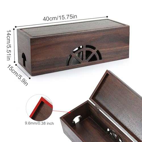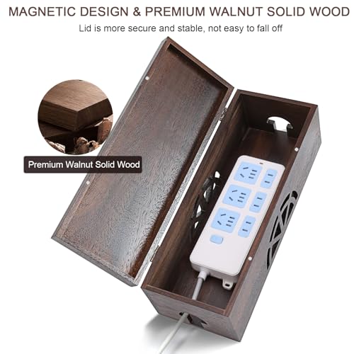conifrag - صندوق تنظيم الكابلات من خشب الجوز لإخفاء الأسلاك بتصميم مغناطيسي وفتحة مخرج للمشترك الكهربائي والحماية من زيادة التيار للمنزل والمكتب والمطبخ، 40 سم طول × 15 سم عرض × 14 سم ارتفاع