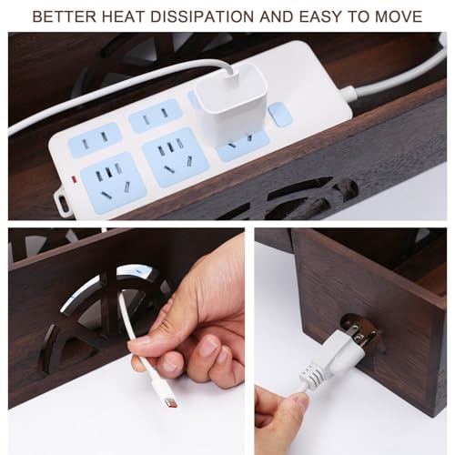 - خشب صلب عالي الجودة: مصنوع من خشب الجوز الصلب الممتاز (السُمك: 0.39 انش) من صندوق إخفاء الكابلات هذا، متين وصديق للبيئة، مما يعرض لمسة من الفخامة. تصميم بمقبض مريح، يمكنك تحريكه بسهولة في أي مكان. بالإضافة إلى فتحات تبريد لضمان تبديد الحرارة من أجل السلامة.