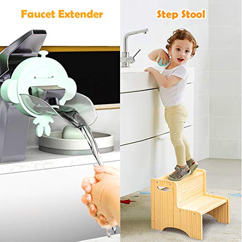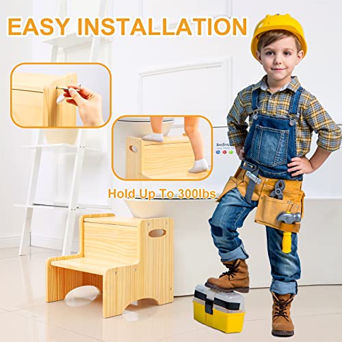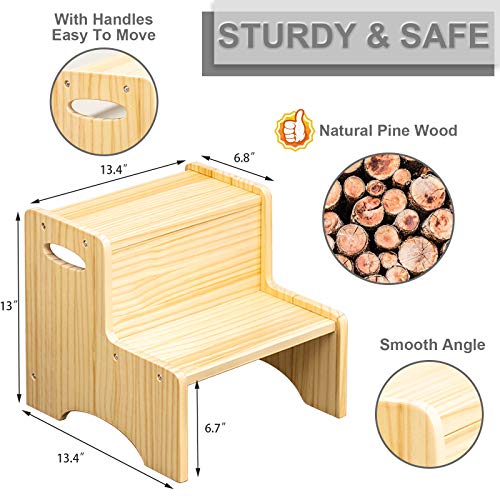 WOOD CITY - وود سيتي مقعد للاطفال الصغار من الخشب بدرجتين مع مقابض، وسادات اضافية مضادة للانزلاق للسلامة، مقعد نونية للحمام ومقاعد المطبخ، خشب الصنوبر