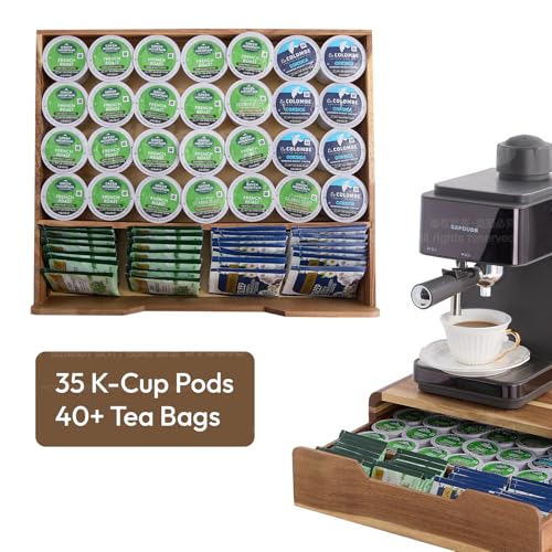 QYZFXXSF - منظم كبسولات القهوة الخشبي، منظم حامل اكواب على شكل حرف K للمنضدة، حامل ماكينة تحضير القهوة على شكل حرف K، 35 قطعة (اكاسيا)