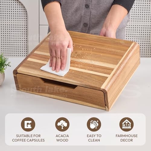 - خشب الأكاسيا الطبيعي - تعمل حبيبات خشب الأكاسيا الطبيعية الساحرة على رفع درج كبسولات القهوة، مما يجعله يشبه قطعة فنية عند وضعها على سطح الطاولة. تتميز زواياه الدائرية الأنيقة عن حامل كبسولات القهوة التقليدي. بينما يعزز الطلاء العلوي بلون الأكاسيا جوًا من الرقي والهدوء.