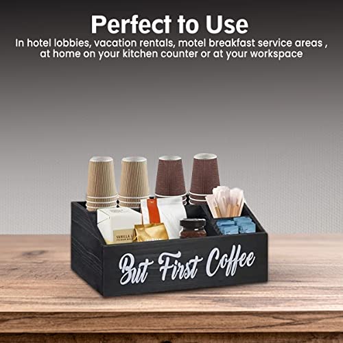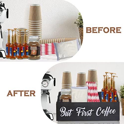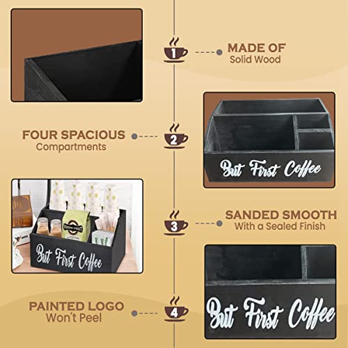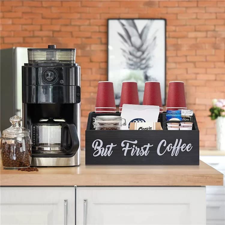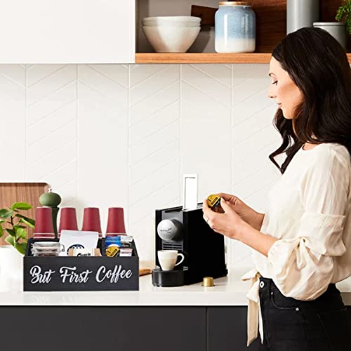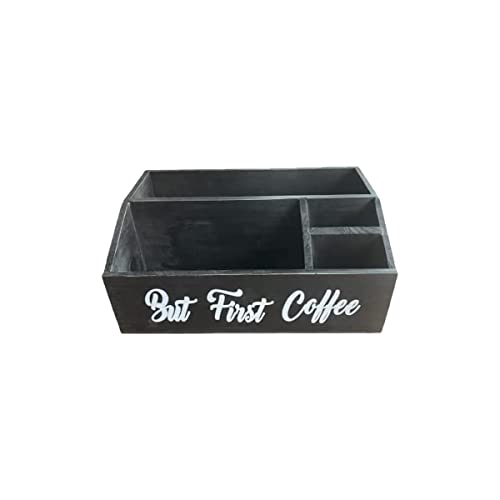- ☕️جودة يمكنك الوثوق بها - منظم طاولة القهوة الخشبي الخاص بنا مصنوع من الخشب الصلب. خفيف الوزن ولكنه متين؛ أسود قاسي قليلاً وصقل ناعم مع لمسة نهائية محكمة الإغلاق. عبارة "BUT FIRST COFFEE" مطلية يدويًا ولن تتقشر. منظم القهوة الخاص بنا مصنوع يدويًا مع الكثير من سحر ديكور المنزل الريفي الحديث. مناسبة جدًا لخلق مساحة مطبخ نظيفة ومنظمة لحامل كبسولات القهوة أو منظم أكياس الشاي لإنشاء أفضل مقهى.