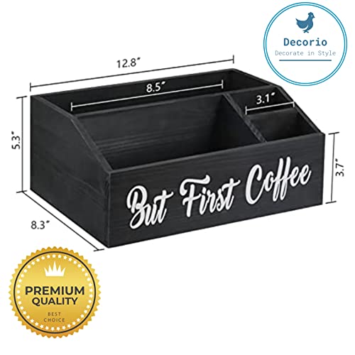 Decorio Decorate In Style - ديكور خشبي لتنظيم محطة القهوة منظم طاولة صينية تخزين كبسولات بار اكسسوارات الشاي حامل اكواب كيه لمحبي