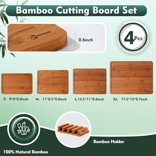 Foressic - مجموعة ألواح تقطيع خشب من خشب البامبو المكربن بسطح أملس مع حامل قدم غير قابل للانزلاق وللتثبيت فوق الحوض، صينية لتقديم الجبن من الخشب الصلب السميك والمتين، أدوات مطبخ (مكربنة)، مكونة من 4 قطع