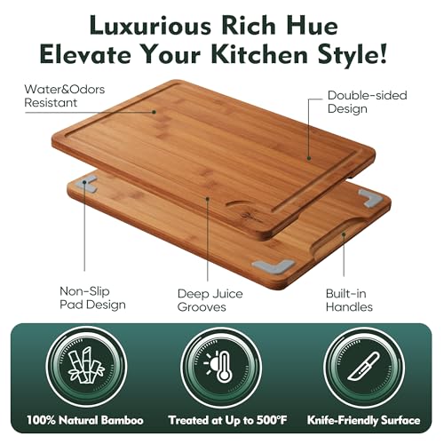 - أربعة مقاسات مثالية لأغراض عديدة: تأتي ألواح التقطيع المصنوعة من البامبو بأربعة مقاسات - 23 سم × 15 سم، 28 سم × 21.5 سم، 37 سم × 28 سم و44 سم × 30 سم. هذه المجموعة المكونة من أربعة ألواح تقطيع من البامبو هي الأداة المثالية لإعداد الطعام اليومي، من تقطيع الفواكه إلى الخضروات. أبعاد مدروسة لتلبية الاحتياجات المختلفة دون أن تشغل مساحة كبيرة على الطاولة. سواء كان تقطيع الخضروات أو تقطيع الفواكه أو تقطيع اللحوم، فإن لوح التقطيع مناسب لجميع أنواع المناسبات. مناسبة لجميع أنواع مهام المطبخ وألواح الطعام المطبوخة.