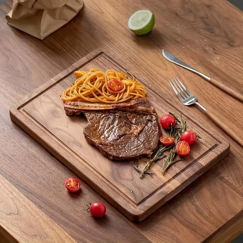 - يتميز لوح التقطيع بكونه قابلًا للاستخدام على الوجهين مع قناة لجمع العصير في الأمام. خشب الأكاسيا قوي ولطيف على السكاكين، مما يساعد في الحفاظ على حدة الشفرات ويمنع البهتان.