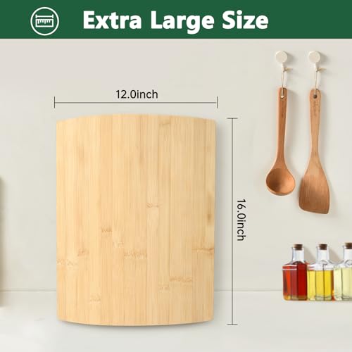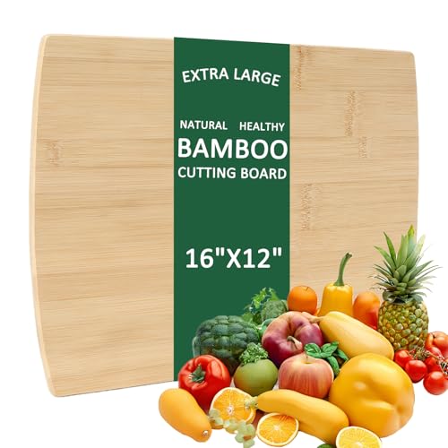 ZJYOUZHU - لوح تقطيع خشبي للمطبخ، لوح تقطيع من الخيزران، لوح تقطيع خشبي كبير، الواح تشاركوتيري للجبن، لوح تقطيع من الخيزران العضوي بنسبة 100% للحوم والخضروات والفواكه، 16 × 12 انش