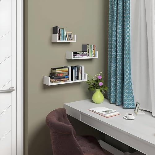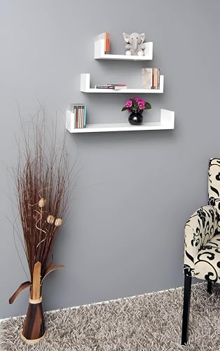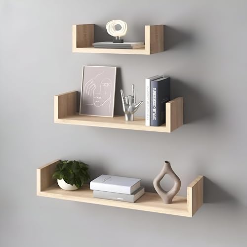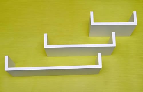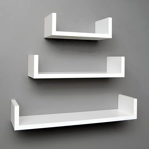 - مجموعة من 3 أرفف جدارية عائمة على شكل حرف U مصنوعة من خشب ليفي متوسط الكثافة المتين، تجمع بين البساطة الحديثة والسحر الكلاسيكي لديكور أي غرفة.