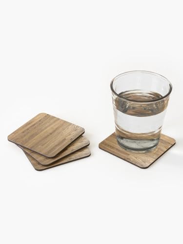 Generic - قواعد أكواب من الخشب المحبب (طقم من 4 قطع)
