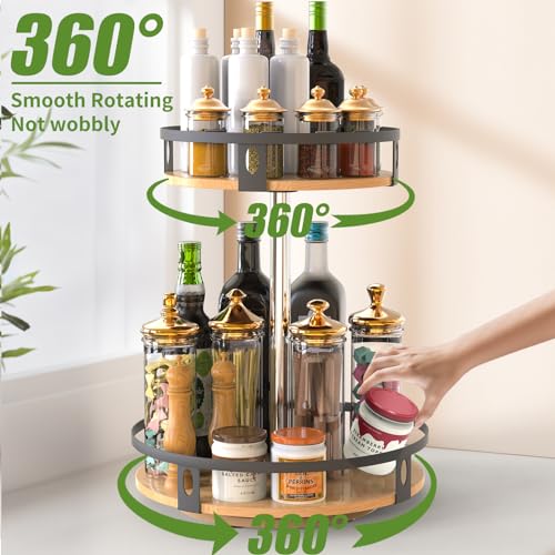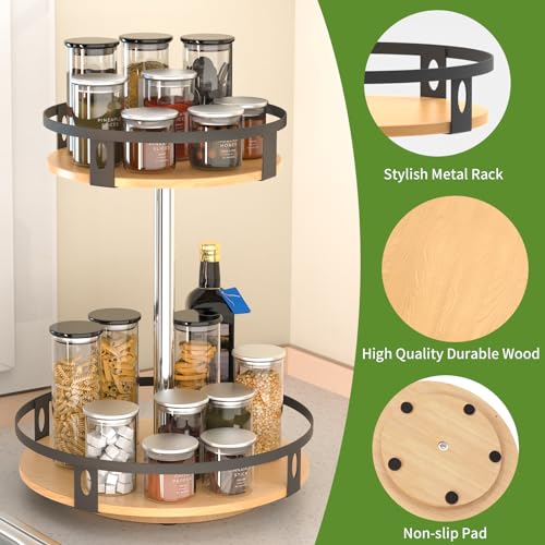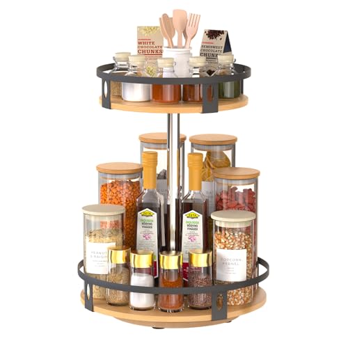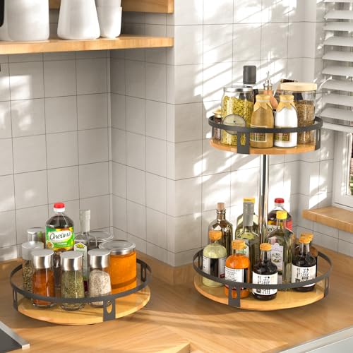 DTUQYX - منظم خشبي ليزي سوزان، رف توابل دوار 360 درجة بطبقتين مقاس 11 انش لخزانة المؤن والمطبخ وسطح الطاولة والخزانة وديكور المنزل (اسود)