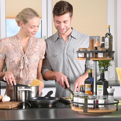 - 【حل موفر للمساحة】من خلال استخدام المساحة الرأسية بشكل فعال، تساعد ليزي سوزان المكونة من طبقتين على التخلص من الفوضى وتحسين التخزين في المساحات الصغيرة، مما يجعلها خيارًا عمليًا للتخزين للمنزل.