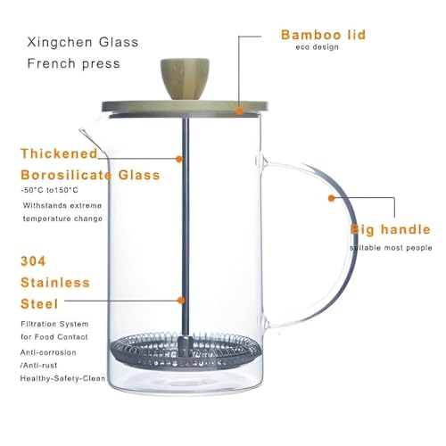 - تشمل المواد الفاخرة وعاءً زجاجياً من البورسيليكات المقاوم للحرارة، وغطاءً من الخشب الطبيعي مع مقبض، ومكبساً متيناً من الفولاذ المقاوم للصدأ لأداء يدوم طويلاً.