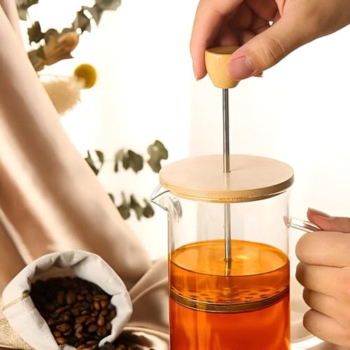 Generic - مكبس بغطاء خشبي - مكبس فرنسي صغير الحجم مع غطاء خشبي وزجاج البوروسيليكات ومكبس من الفولاذ المقاوم للصدأ، 350 مل.