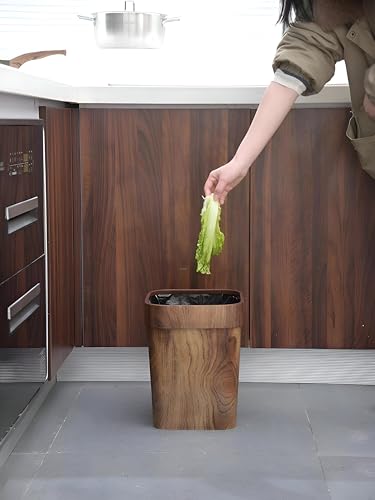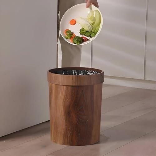 Generic - سلة مخلفات دائرية عصرية بمظهر خشب ولمسة نهائية من الخشب الصناعي وجزء داخلي من البلاستيك المتين وغطاء هادئ ومظهر أنيق يكمل أي غرفة من مناطق المعيشة إلى المكاتب المنزلية، متعددة الألوان