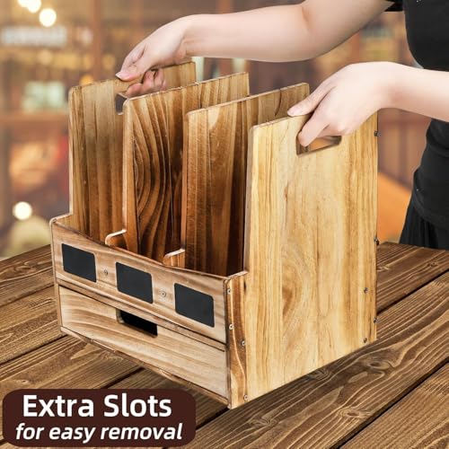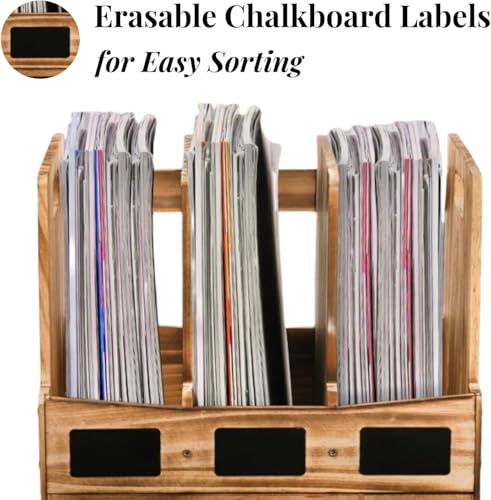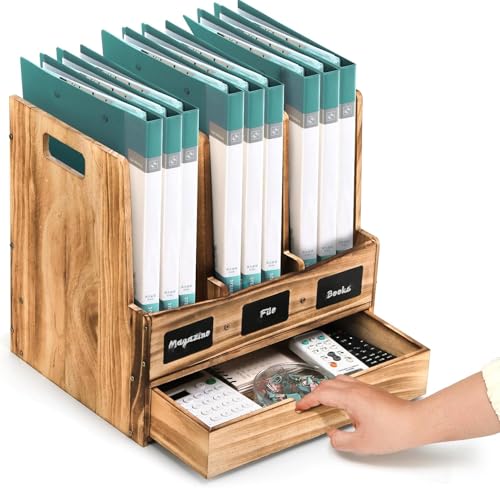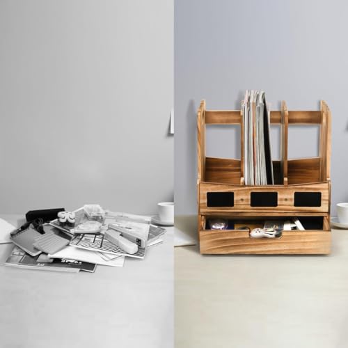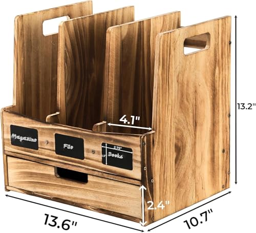Generic - حامل خشبي للمجلات والمستندات للمكتب مع 3 مساحات تخزين ودرج واحد، منظم مكتب ورف مجلدات مع ملصقات للكتابة، صندوق تخزين للمجلات وفرز رسائل البريد للمكتب والمنزل