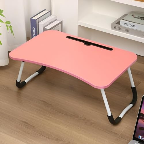 Generic - مكتب خشبي ومعدني - طاولة لابتوب محمولة قابلة للطي مقاس 60 × 40 سم مع حامل للتابلت والجوال، مثالية للقراءة وتناول الطعام، تصميم بيج
