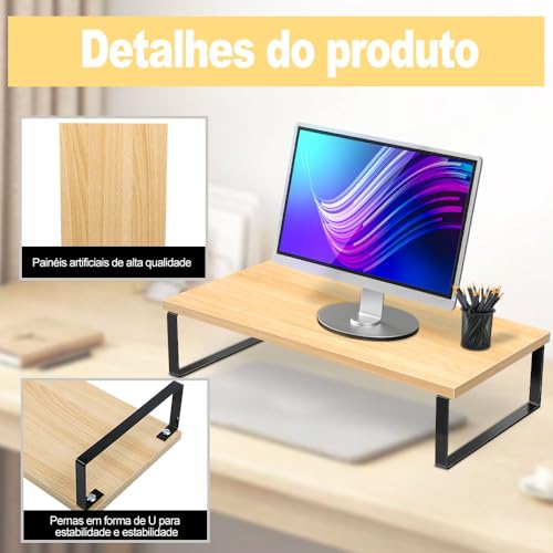 Darhan - حامل شاشة خشبي (بطول 80 سم)، قاعدة شاشة، حامل شاشة، حامل شاشة، حامل شاشة، حامل شاشة، حامل شاشة، حامل شاشة مكتبي، حامل شاشة