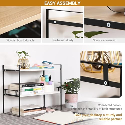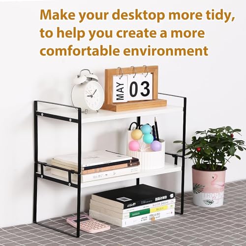 DoToGo - منظم مكتبي من الخشب لسطح المكتب حامل بتصميم رفوف مكتبة لتخزين وتنظيم الكتب بتصميم جمالي لديكور الطاولة والتسريحة للنساء والرجال والأطفال