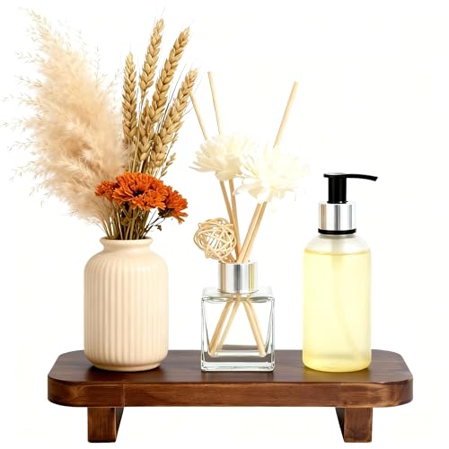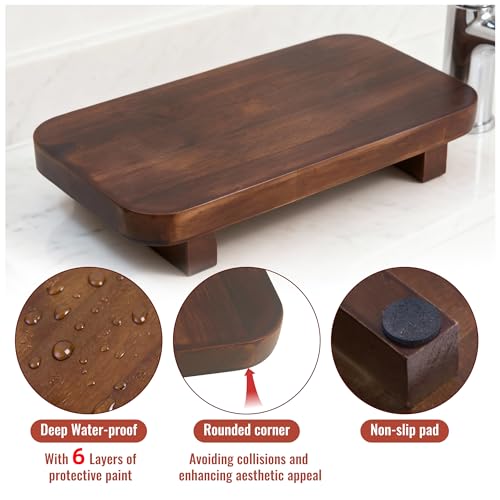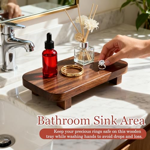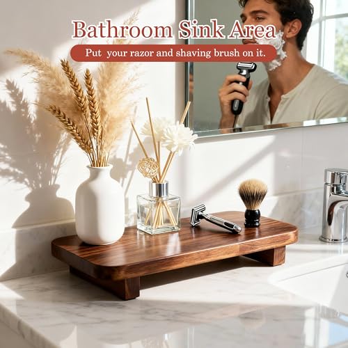 ecoeco - حامل خشبي للديكور، حامل بقاعدة عريضة الحجم للحمام، صينية ديكور للمنزل الريفي، حامل صابون للعطور والشموع والاسفنجة، 9 انش × 4.7 انش - خشب الجوز