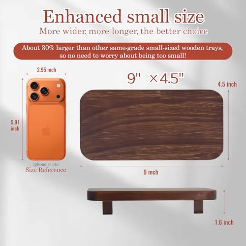 - حجم مثالي: يبلغ مقاس كل صينية خشبية 9 × 4.7 × 1.6 انش. عرض مطور إلى 4.7 انش، أكثر ملاءمة لوضع مصابيح الملح والمزهريات وغيرها من العناصر الزخرفية.