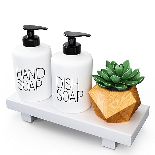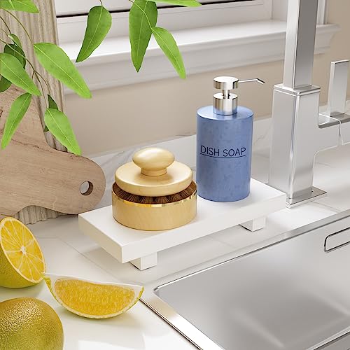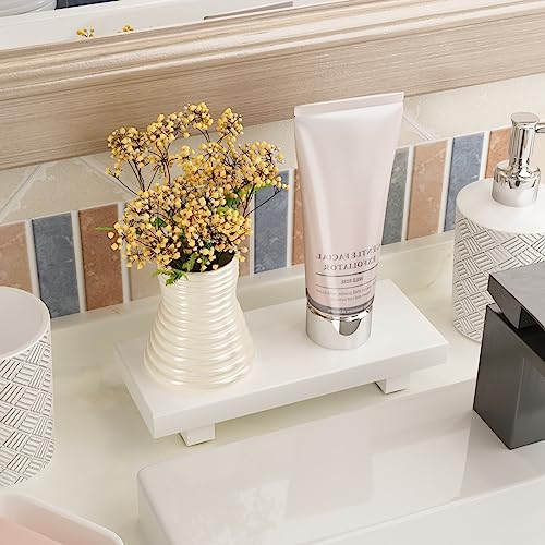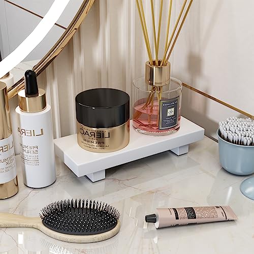 RKZ - حامل خشبي لمنضدة الزينة وحوض الحمام وخزان المرحاض، حامل صابون بقاعدة ديكور عصري لمنزل المزرعة لعرض زجاجات اللوشن، صينية ديكور صغيرة للشموع والعطور، أبيض