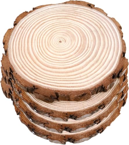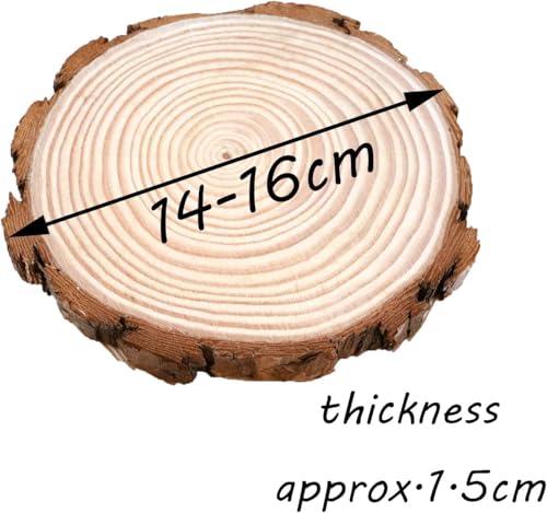 Generic - شرائح خشبية 14-16 سم للحرف اليدوية، دوائر خشبية طبيعية كبيرة غير مكتملة، قواعد للحرف اليدوية، قواعد اكواب خشبية للحرف اليدوية وديكورات شموع الكريسماس (4)