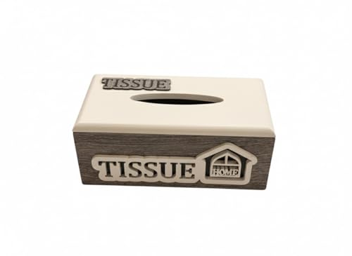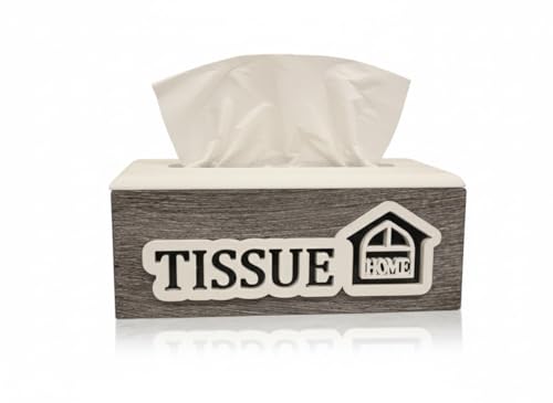 Generic - صندوق مناديل خشبي، تصميم خشبي ريفي مع نص منزلي، رمادي وابيض، حامل مستطيل للحمام وغرفة المعيشة