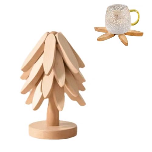 WHHLZJYXGS - مجموعة قواعد اكواب خشبية على شكل شجرة - 4 حوامل من الفلين للاطباق الساخنة + 1 حامل من خشب البلوط (مجموعة من 5 قطع)، حوامل للاواني الساخنة والمقالي، مناسبة للاستخدام في المطبخ وتناول الطعام (لون لوج 4+
