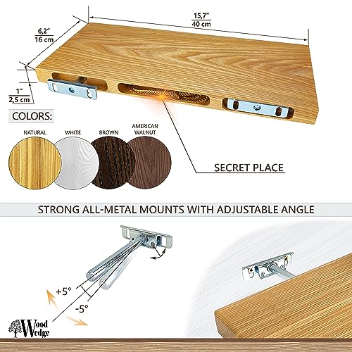 Wood Wedge - مجموعة ارفف خشبية عائمة من 2 رف حائط خشبي ريفي بعرض 15.7 انش صنعت في اوروبا لغرفة المعيشة وغرفة النوم والمطبخ والحمام والمزرعة لون نوارال 15.7 × 6.5 حافة حية أبيض
